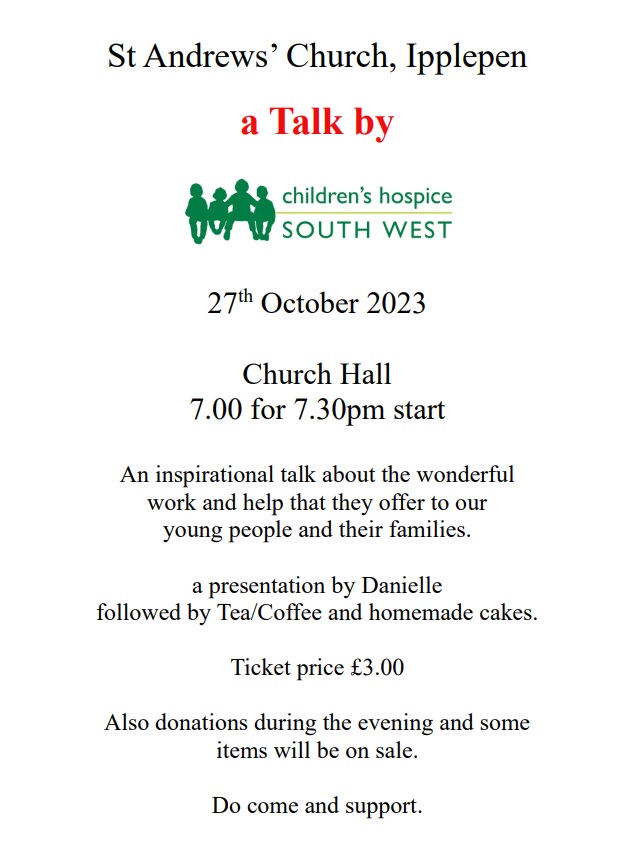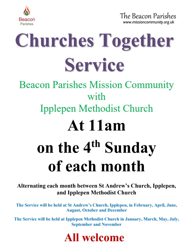 10.30am St Andrew’s Ipplepen – short service followed by the Walk of Witness (carrying the cross) through Ipplepen Village