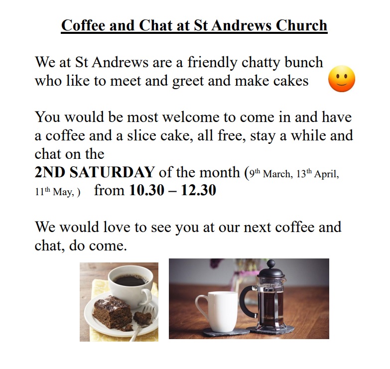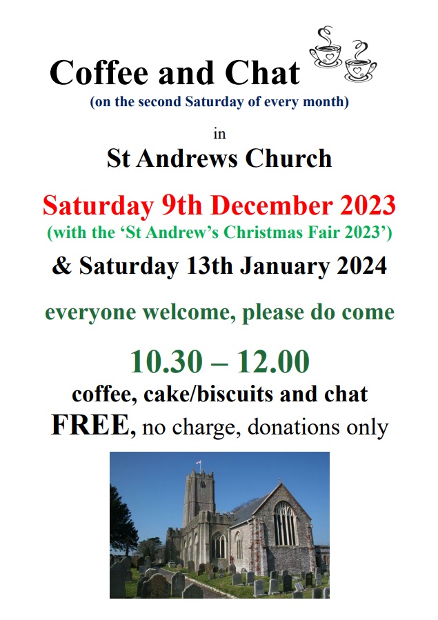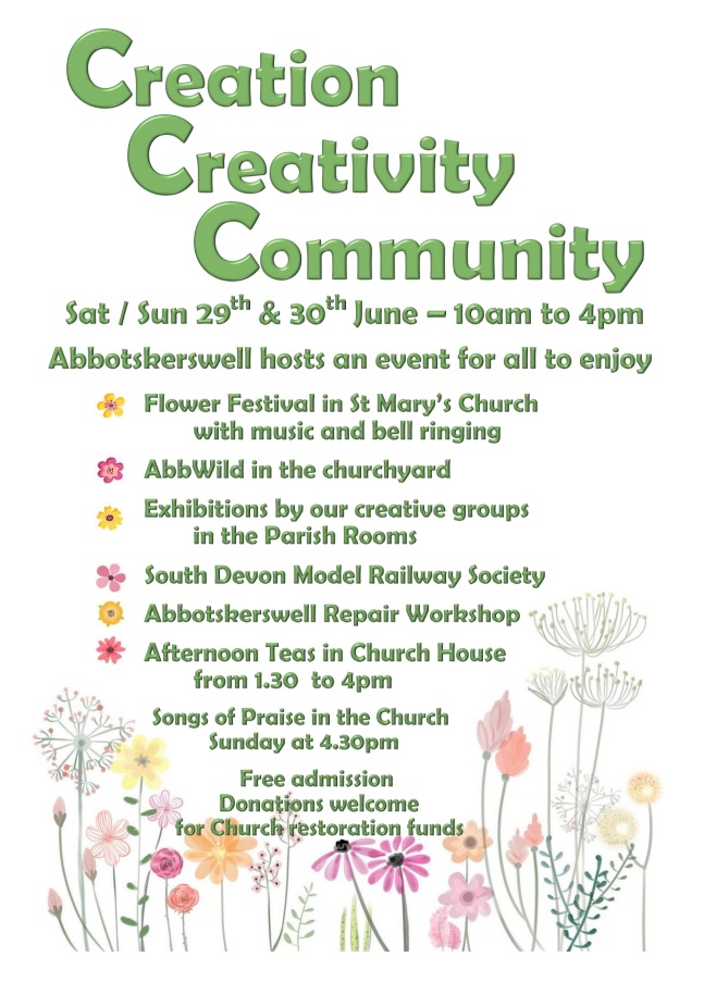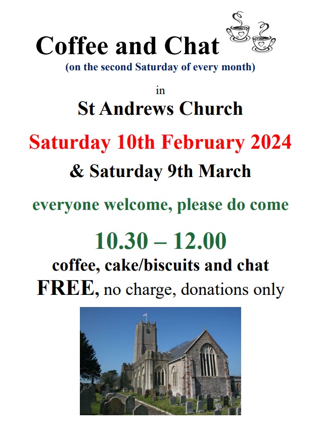 10.30am – 12noon St Andrew’s Ipplepen – a morning of coffee, chat, activities and crafts around the Easter Story – for all ages, children bring a parent!