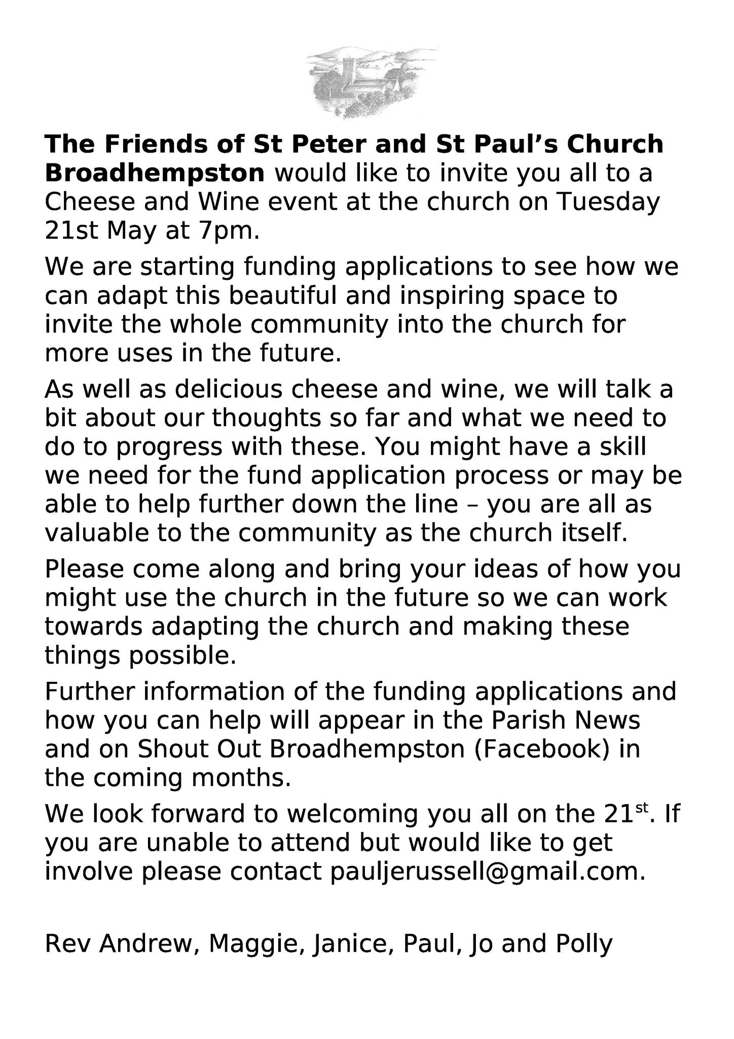 6.30pm St Andrew’s Ipplepen -final Lent study group and Holy Communion